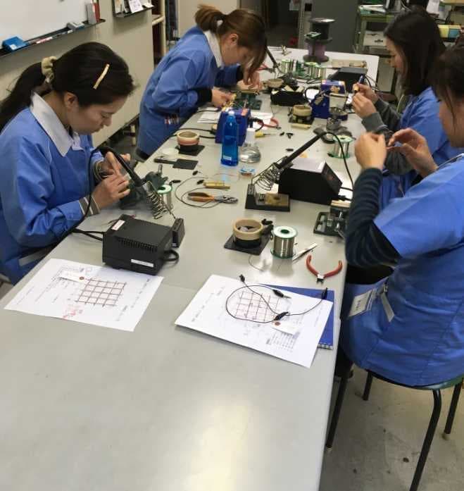 富士電子では多くの女性スタッフが活躍しています!新しい仕事が来るたびに皆で新しい技術を身に付ける勉強会を行っています。新しい技術を習得できることは喜びでもあります。この地道な繰り返しが富士電子の高い品質を維持しています。
