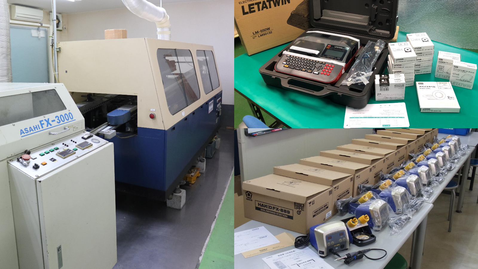 電子部品の組立に関する製造設備は充実しております。最新のハンダゴテとレタツィンも購入し、生産効率は大幅にUPしています。また、高い品質を維持するために検査システムも充実しております。どうぞ安心してご依頼ください。
